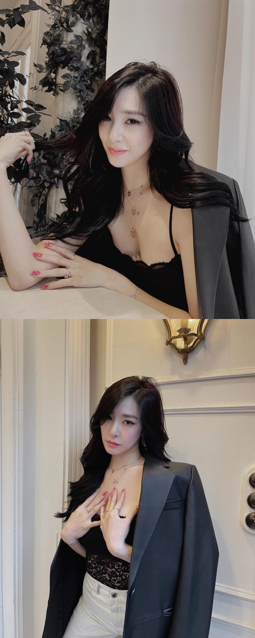 アップされた写真には、黒いレースがあしらわれたキャミソールにジャケットを羽織ったティファニーの姿が写っている。