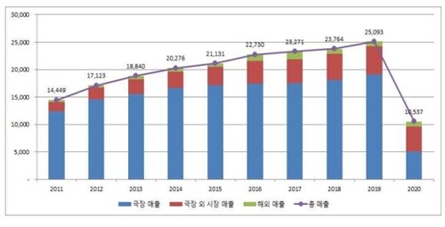 当然ながら、売上額も“最低値”となった。2020年の売上額は5104億ウォン(約510億円)で、前年比73.3%減。2005年以降で最も少ない金額だ。そのうち韓国映画の売上額は、前年比63.9%減の3504億ウォン(約350億円)と集計された。