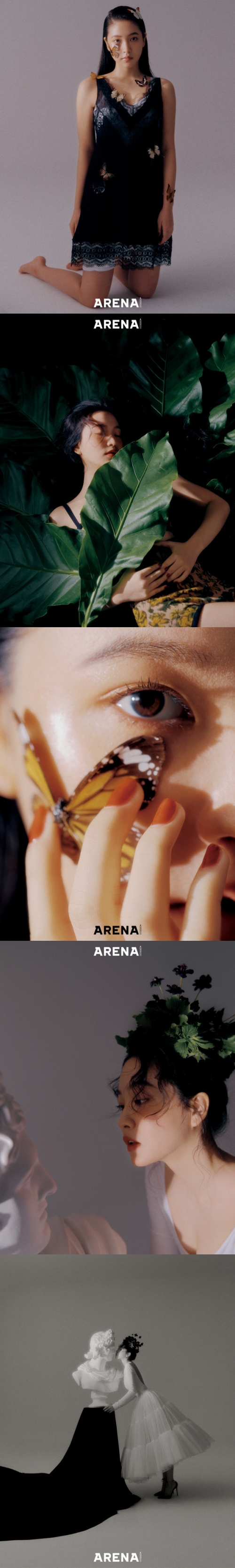 ミステリアスでロマンチックな雰囲気の撮影カットでイェリは全身に蝶をのせたり、大きな葉に顔をうずめたり、花冠をつけたりとファンタジーで魅力あふれるシーンを演出している。