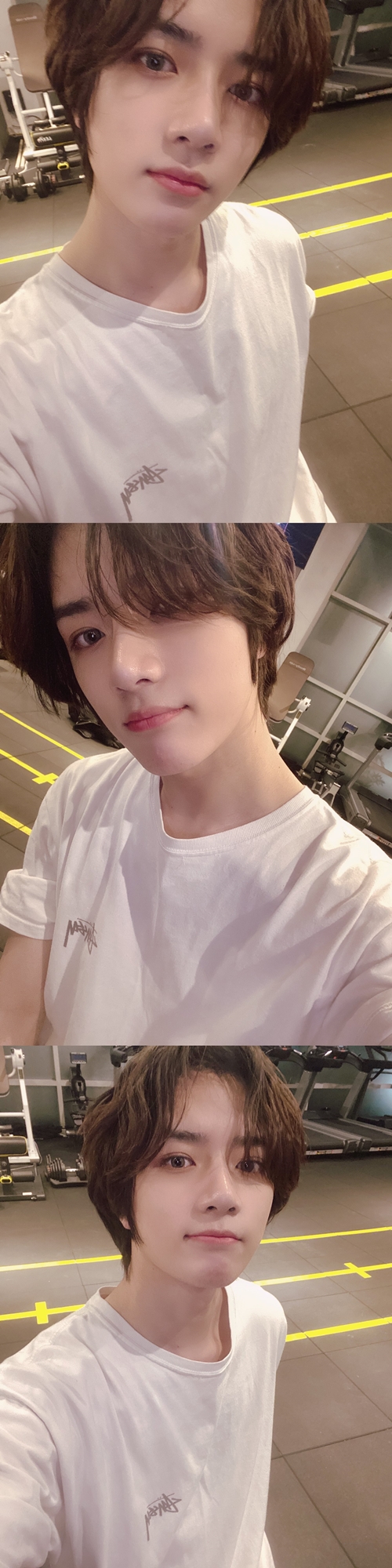 BEOMGYUは3月2日、TXTの公式ツイッターに近況写真を掲載。「運動中」とし、トレーニングに励む自身の姿を公開した。