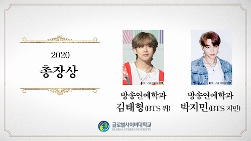BTS(防弾少年団)のJIMINとVが、3月4日に行われたグローバルサイバー大学の2020年度学位授与式で総長賞を受賞した。