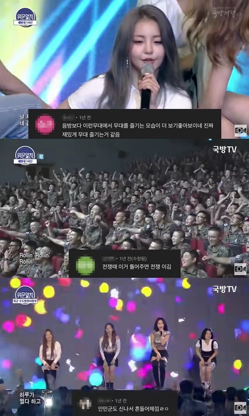 その動画は、兵役中の軍人の前で『Rollin'』を歌うBrave Girlsのステージを編集したもので、『Rollin'』を愛する人たちが残した秀逸なコメントも一緒に楽しむことができる。彼女たちの魅力的なステージ上のパフォーマンスはもちろんだが、軍人たちがダンスを一緒に踊ったりする熱狂ぶりも楽しい動画だ。