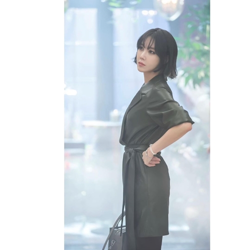 写真には、『ペントハウス』で見せていたシム・スリョン役の優雅な姿から一転、黒髪のボブに濃いアイメイクをまとった力強い姿が写っている。