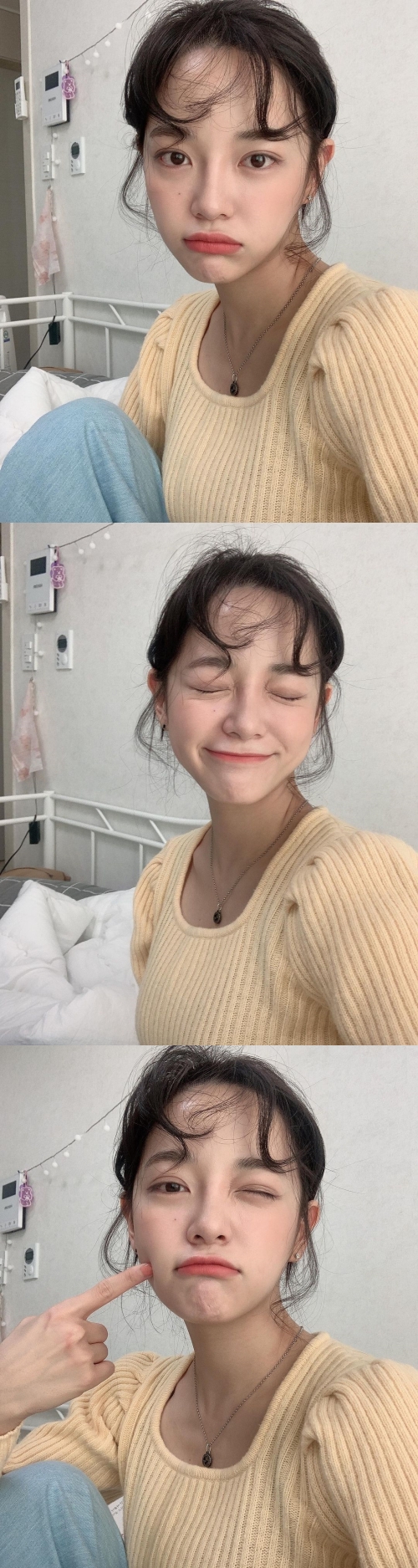 キム・セジョンは唇をつきだしたり、ウィンクをして頬をつついてみたり、チャーミングな魅力でビジュアルを誇示した。