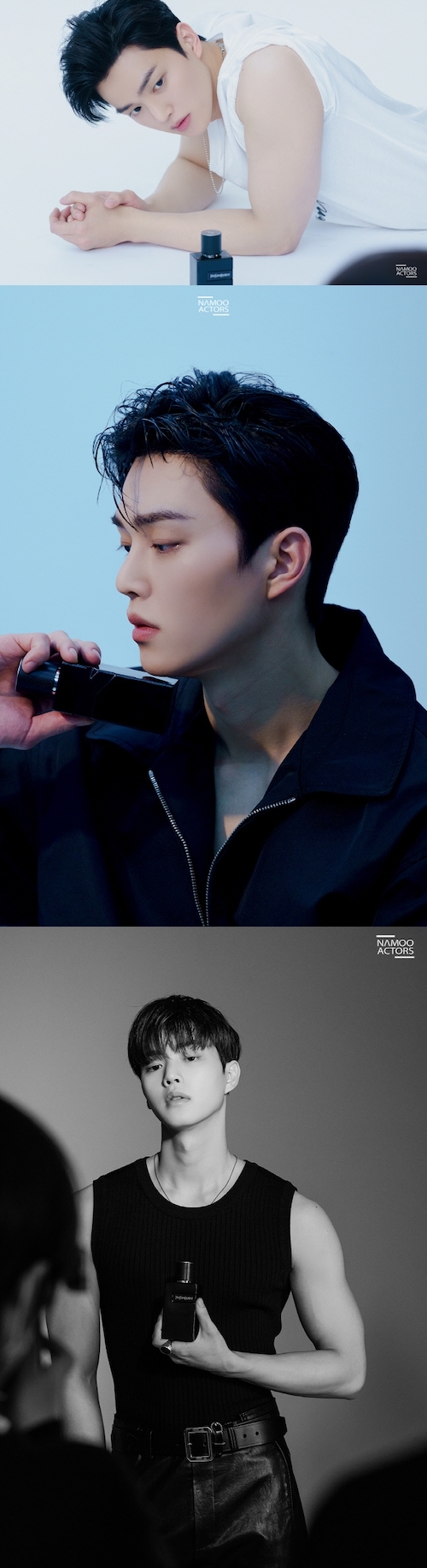 新しく公開されたメイキング写真でも、彫刻のような顔立ちが目を引く。眼差しだけで全く違う雰囲気を演出する彼の姿は、ファンを喜ばせるに十分だ。