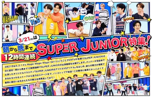 3月21日には、12時間連続SUPER JUNIOR特集を編成することが決定!バラエティやライブなど、メンバー出演作品の数々を一挙に放送します。