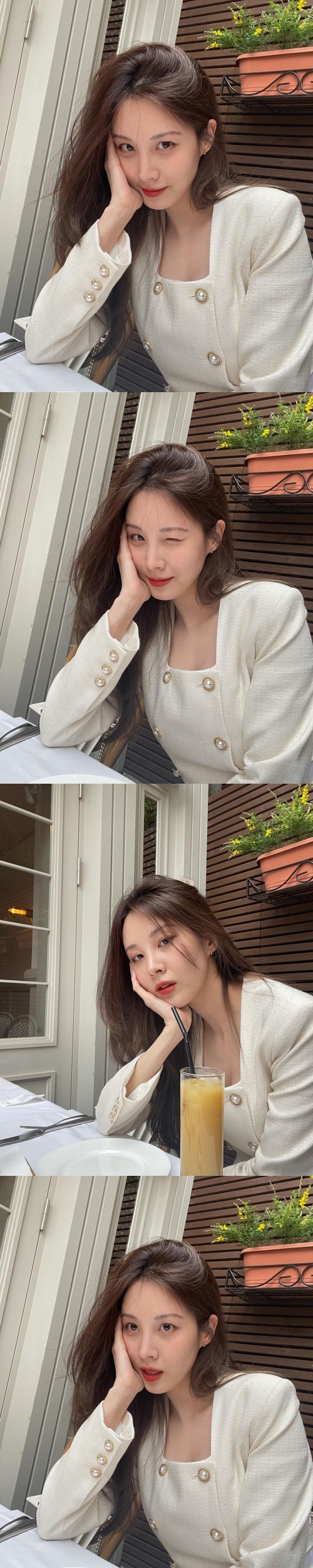 投稿された写真には、カフェと思われる空間でカメラを見つめるソヒョンが写っている。パールが輝く白のツイードトップスを着用したソヒョンは、ウィンクをしたり、頬杖をついたり、キュートな表情でファンを魅了した。