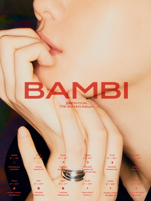 EXOの各種公式SNSには3月15日、ベクヒョンの3rdミニアルバム『Bambi』に関するスケジュールポスターが公開された。