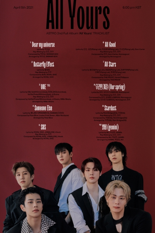 所属事務所Fantagioは3月19日、ASTROの公式SNSチャンネルを通じてASTROの2ndアルバム『All Yours』のグループコンセプトイメージとトラックリストを順次掲載した。