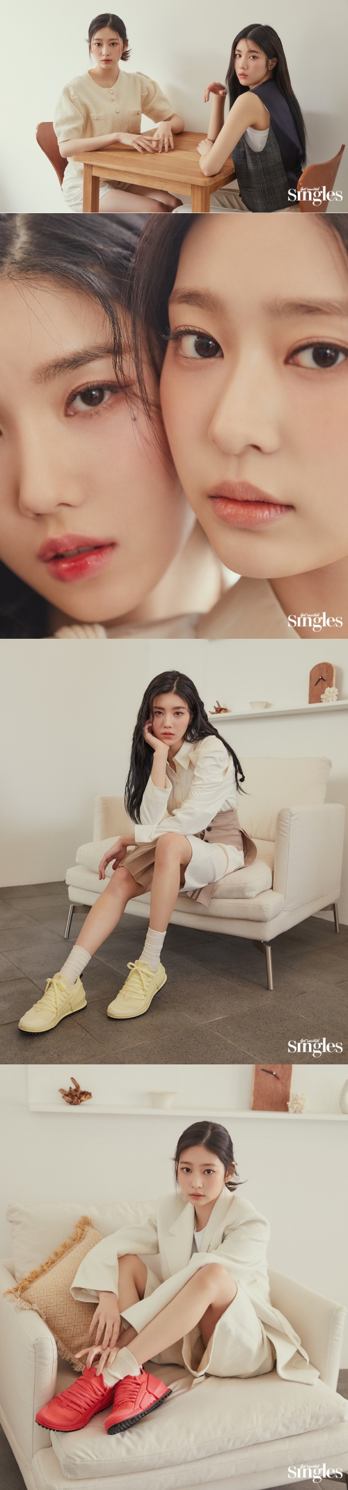 春のように暖かい雰囲気の撮影現場は、クォン・ウンビとキム・ミンジュの明るいエネルギーで活気に満ちている。センスあふれるビスチェコーディネートからトレンディーなクロップドジャケットまで、爽やかな春のスタイリングを多彩に披露した。
