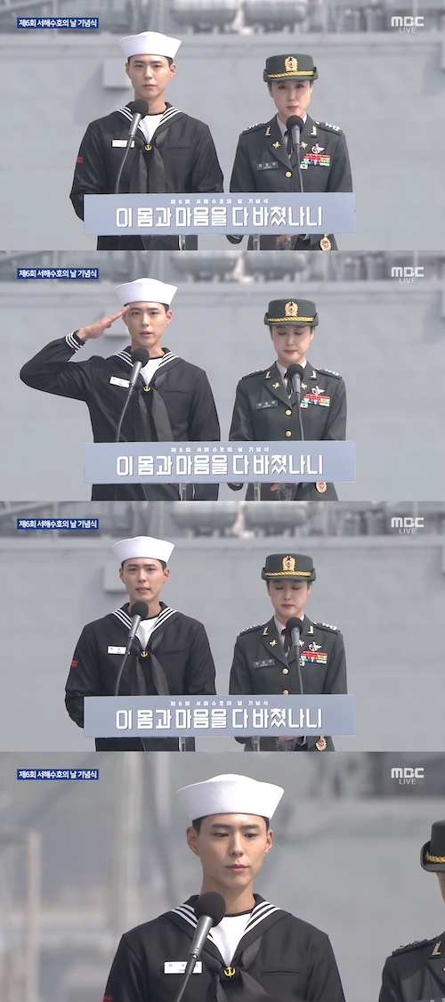 3月26日、韓国では「第6回西海守護の日」の記念行事が行われ、パク・ボゴム(一等兵)とチョン・ドンミ大尉が司会を務めた。