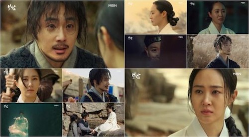 最初に映るのは、「私が死ねばみんなが楽になる」と、崖の上に立ったスギョンの姿。政治的な密約で“大北派”イ・イチョム(演者イ・ジェヨン)の長男と望まない結婚をさせられるも、初夜も行えず未亡人となった挙句、バウにポッサンムされるという不運が続く彼女には、もう「生きる理由がない」らしい。