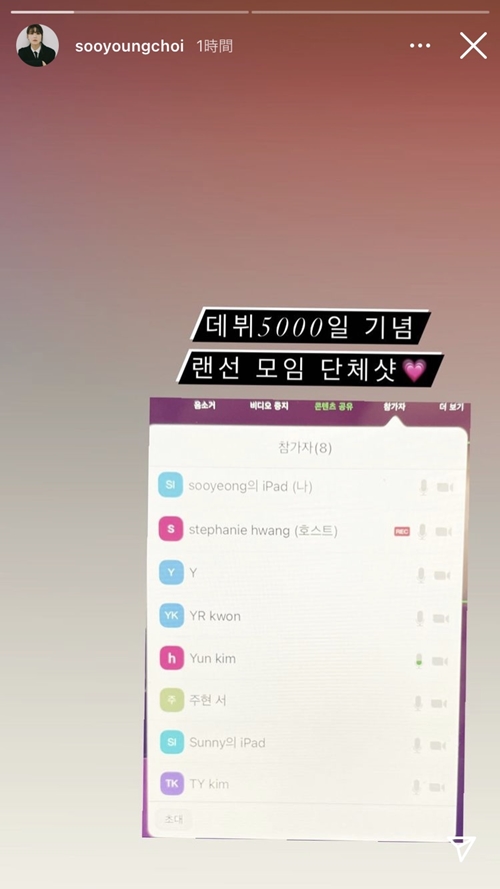 4月12日、スヨンのインスタグラムストーリーには「デビュー5000日記念、LAN線団体ショット」という一言と共に1枚の写真が投稿された。
