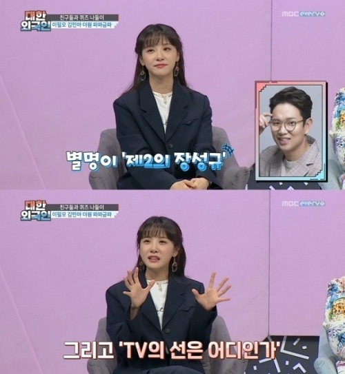 キム・ミナは「多くの人がいるとき、トークのタイミングを掴むことが難しい。テレビで“一線”はどこまでなのかという悩みが増えた」と伝えた。それに対して番組MCのキム・ヨンマンは「経歴を積んでいけばわかるようになる」とアドバイスした。