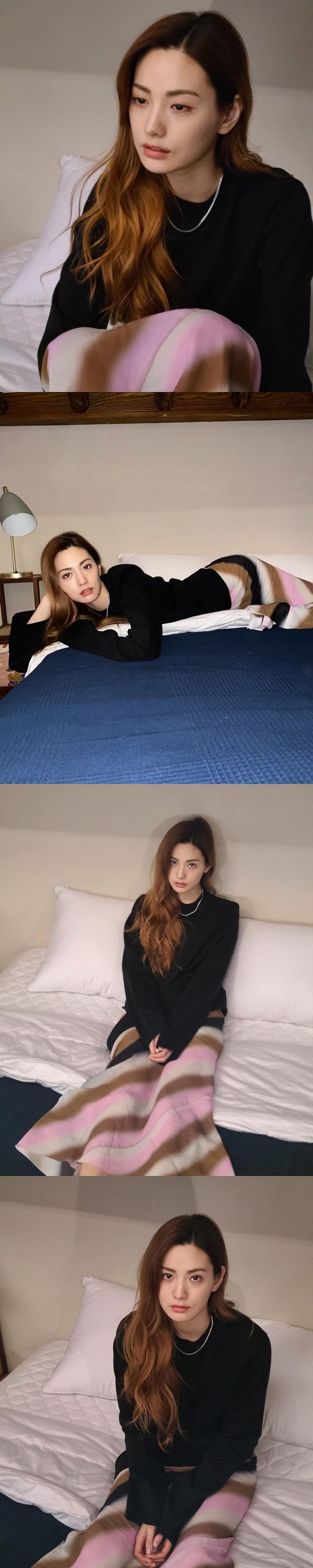 写真には、ベッドに座って儚げな表情で虚空を見つめているナナの姿が。普段の快活で笑顔が印象的な姿とは異なり、艶っぽいアンニュイな雰囲気が目を引く。