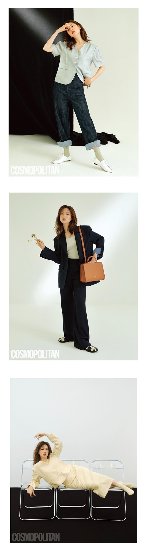 写真にはマニッシュなパンツスタイルやセットアップ、女性らしいフェミニンなコーディネートまで多彩な姿の彼女が写っている。その姿は春らしい爽やかな魅力にあふれている。