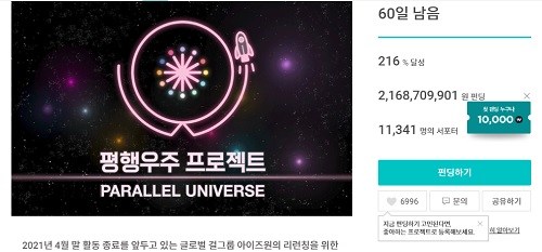 (画像=wadiz)「並行宇宙プロジェクト」20億ウォンを突破