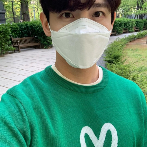 投稿された写真には、鮮やかなグリーンのニットを着用したチャンミンの姿が写っている。目鼻立ちの整った美しい顔はマスクをしていても健在だ。
