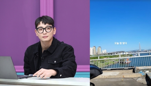 澄んだ青空と漢江(ハンガン)が一望できる広々とした風景は、涼しげな印象を与えた。本人は写っていないが、気持ちを表すかのような文章が注目を集めている。