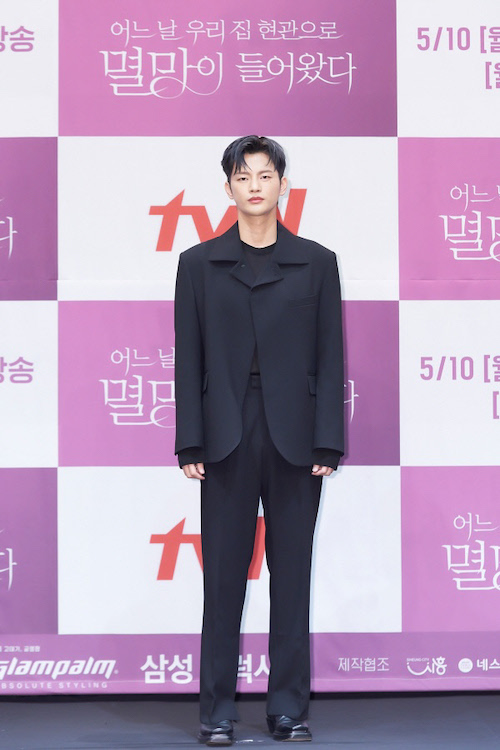 5月6日、tvNの新ドラマ『ある日、我が家の玄関に滅亡が入ってきた』(原題/以下、滅亡)のオンライン制作発表が行われ、クォン・ヨンイル監督とパク・ボヨン、ソ・イングク、イ・スヒョク、カン・テオ、シン・ドヒョンら主演キャストが出席した。