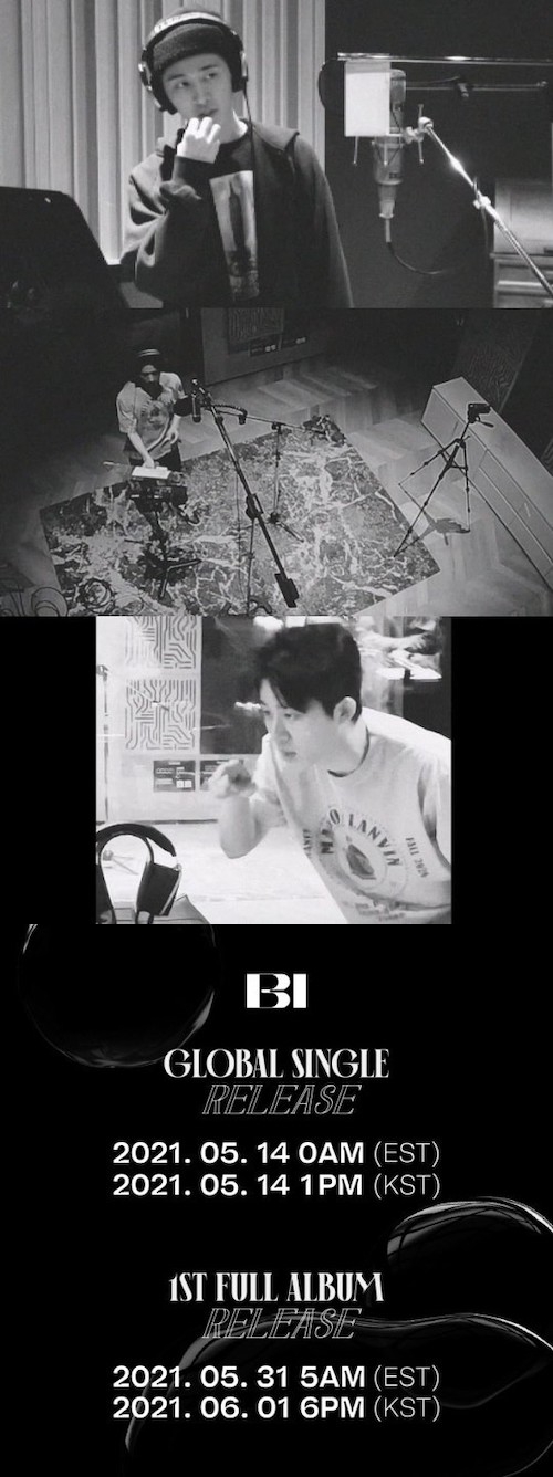 B.Iが新しいグローバルシングルと1stフルアルバムは、それぞれ5月14日13時、6月1日18時(KST)に各種音楽配信サイトにてリリースされる。