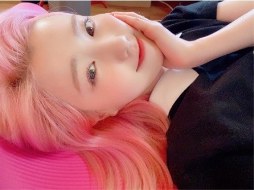 彼女は「皆さんお久しぶりです。またインスタグラムもたくさん更新していきたいと思います!今回は隔離期間中に通販で購入したヘアカラーと同じ色のヨガマットと共に(笑)」と、日本語と韓国語でコメントした。