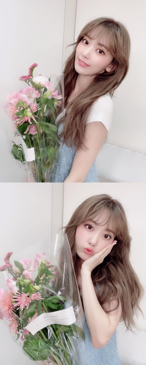 投稿された写真には、花束を持ちながら美しいビジュアルを誇る宮脇咲良の姿が写っている。