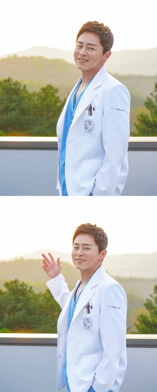 写真の中のチョ・ジョンソクは、白衣を羽織って笑顔を見せている。劇中で見られる肝胆膵外科医イ・イクジュンの優しさが、写真からも伝わってくるようだ。