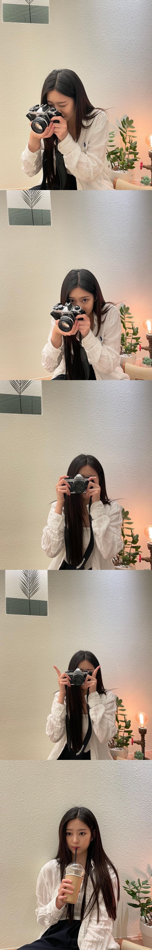 写真の中のキム・ミンジュはカメラを持っている。ファインダーを覗いたかと思えば、次の写真ではこちらをまっすぐと見つめている。