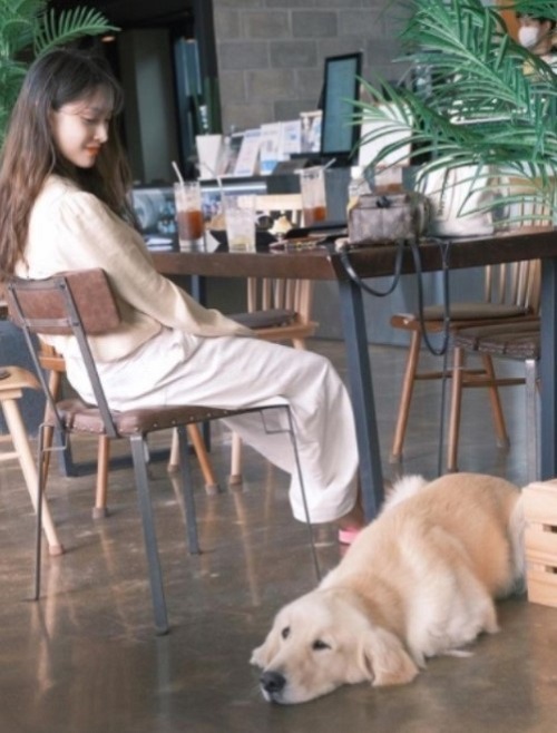 公開された写真でパク・ギュリは、床に伏せているゴールデンレトリバーを見ながら、微笑みを浮かべている。横顔でも美貌が際立っており、相変わらずのビジュアルを見せつけた。“ムンムンイ”は、その犬の名前のようだ。