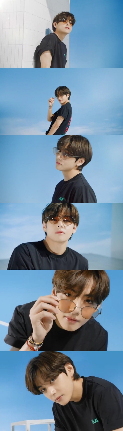 公開された映像には、青空をバックに爽やかな雰囲気のVが登場して始まる。ジーンズにTシャツというシンプルなスタイルは、Vの彫刻のような美しさと魅力を最大限生かしている。