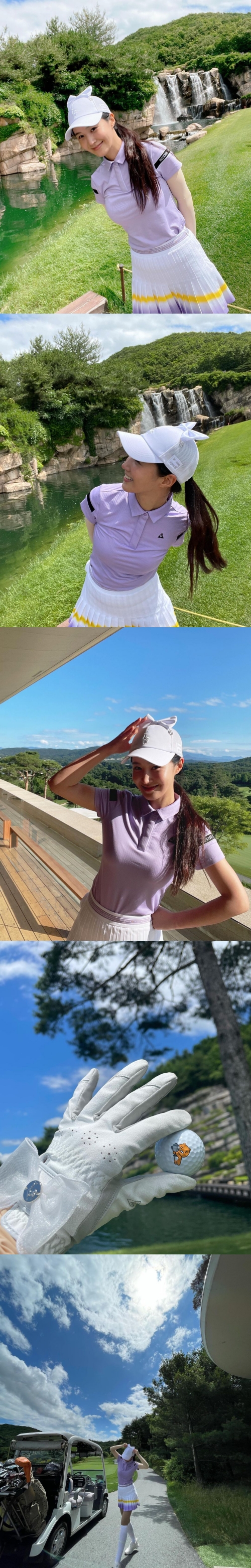 公開された写真には、ラベンダーカラーで統一されたゴルフウェア、リボンがついたキャップを着用したユリの姿が写っている。