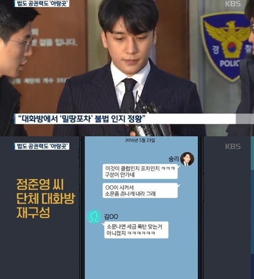 3月16日午後放送されたKBSの『ニュース9』は、V.Iとチョン・ジュニョン、チェ・ジョンフンらが含まれた携帯電話によるグループチャットを通じて、彼らがさまざまな違法行為や違法行為が行われていたことが疑われる状況証拠をつかんだ、と報じた。