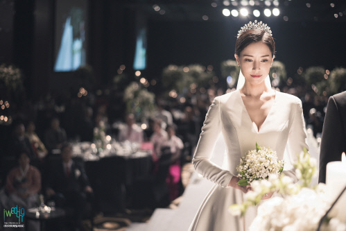 コン・ヒョンジュは所属事務所のジェリー・フィッシュを通じて結婚式の写真を公開。美しい純白のウェディングドレスが目を引く。