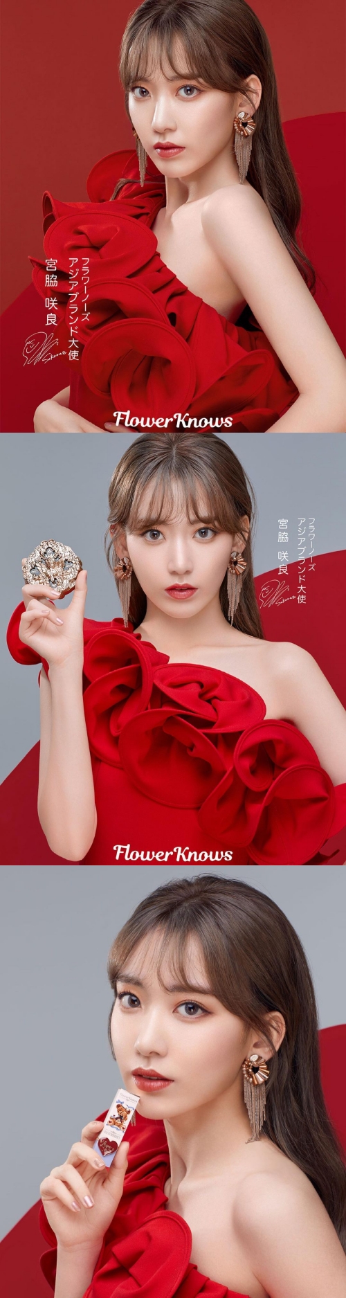 宮脇咲良は6月21日、自身のインスタグラムに「本日からFlowerKnows(フラワーノーズ)アジアブランド大使に就任しました!」という書き込みとともに複数枚の広告写真を投稿している。