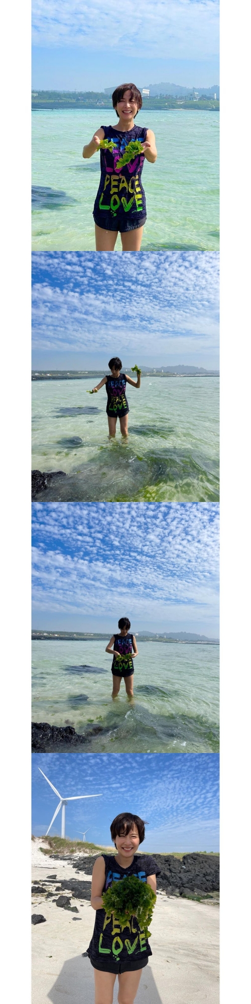 写真には、済州島(チェジュド)の海で海藻を取るチョ・ヨジョンの姿が写っている。最近切ったというショートカットの髪型がよく似合っている。満面の笑みを浮かべながらカメラを見つめるチョ・ヨジョンの無邪気な魅力は、見る者を虜にした。