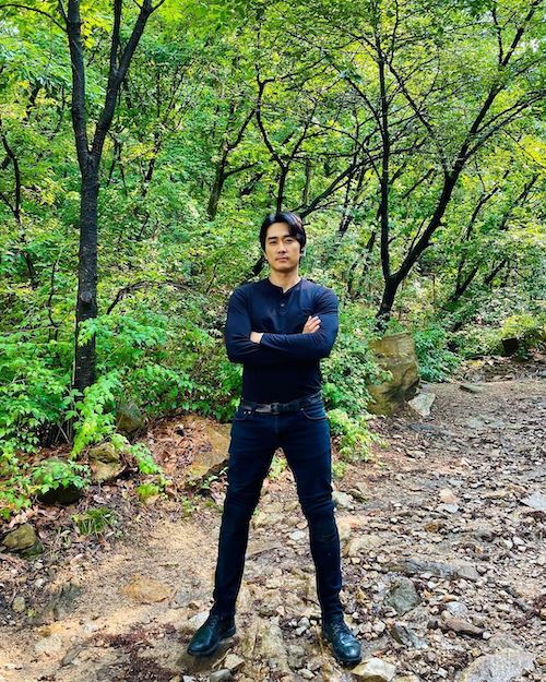 写真の中のソン・スンホンは、腕を組み仁王立ちポーズを決めている。緑の木々に囲まれた山の中、紺色のトップスとスキニージーンズを着て抜群のプロポーションを披露しているその姿は、見る者の感嘆を誘った。