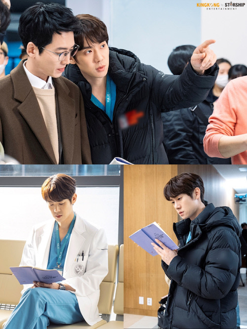 所属事務所キングコングby STARSHIPは6月30日、撮影現場で収めたユ・ヨンソクの姿を公開。小児外科教授のアン・ジョンウォン役を務めている彼は、手術着を着て真剣に台本を熟読している様子だ。休憩時間にも台本を肌身離さず、真面目に取り組んでいるその姿から演技への強い情熱がうかがえる。