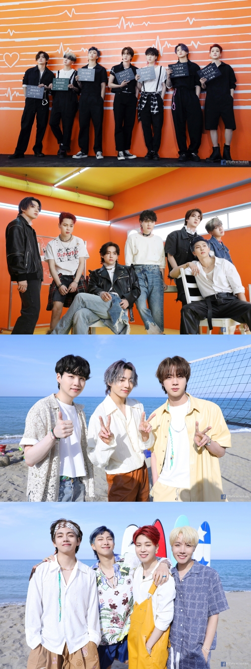 別の写真では海をバックににっこりと微笑むBTSの姿が写っている。暑さを吹き飛ばす爽やかなビジュアルは見るものを虜にした。
