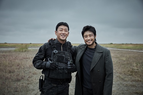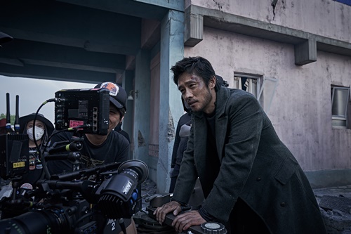 また、あわせてイ・ビョンホンのメイキングカットも解禁。撮影セットで、眼光鋭く撮影に挑むオーラあふれる姿や、スタッフとともにモニターで映像を確認する様子、さらに本作で初共演となったハ・ジョンウとのオフショットなど、現場での緊張感と良い雰囲気が伝わるカットとなっている。