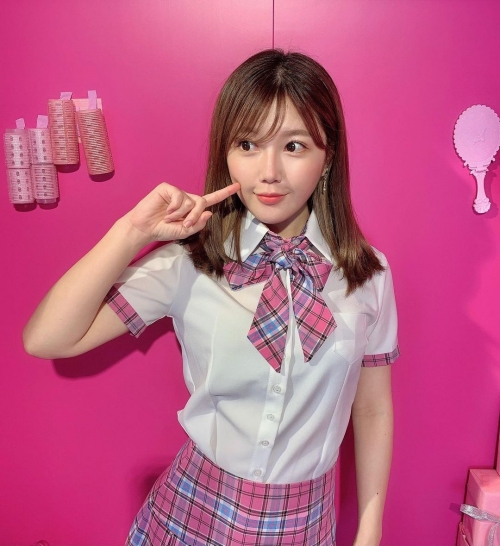 宮崎美穂は指で頬を指しながら人形のような可愛らしい表情を浮かべた。何より、ピンク色の制服姿は2018年に韓国で放送されたオーディション番組『PRODUCE 48』での姿を想起させ、ファンを喜ばせている。