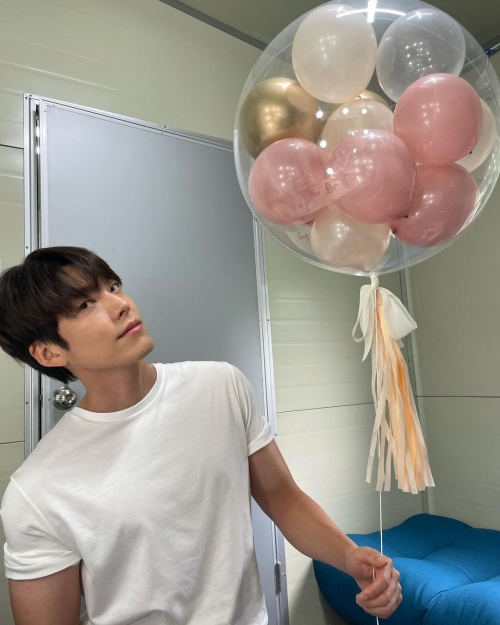 掲載された写真には、風船を手にしたキム・ウビンが写っている。