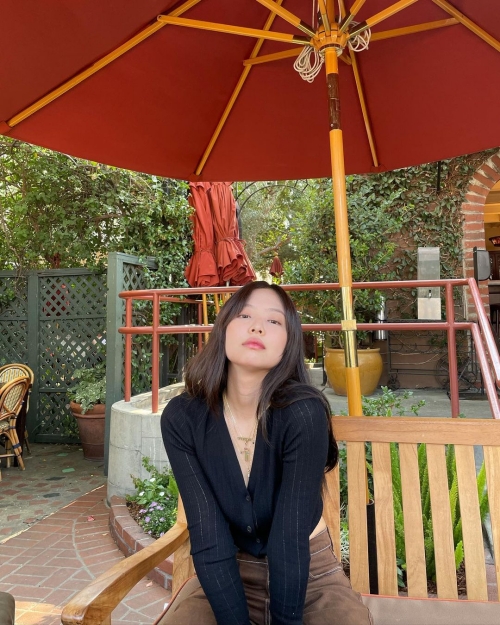 投稿された写真には、テラスに座りながらサングラスを外すジェニーの姿が写っている。