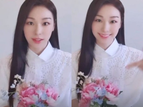 投稿された映像に写っているキム・ヨナは、鮮やかな色の花束を持ちながらカメラを見つめてニッコリと笑っている。白のシャツにレースがあしらわれたニットは彼女の白い肌と清楚な雰囲気をより一層魅力的に引き立たせた。