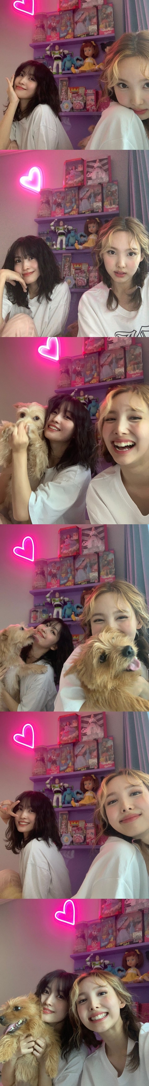 投稿された写真の中のナヨンとモモは、バービー人形やおもちゃなどが置かれた子供部屋らしき場所で仲睦まじい様子だ。