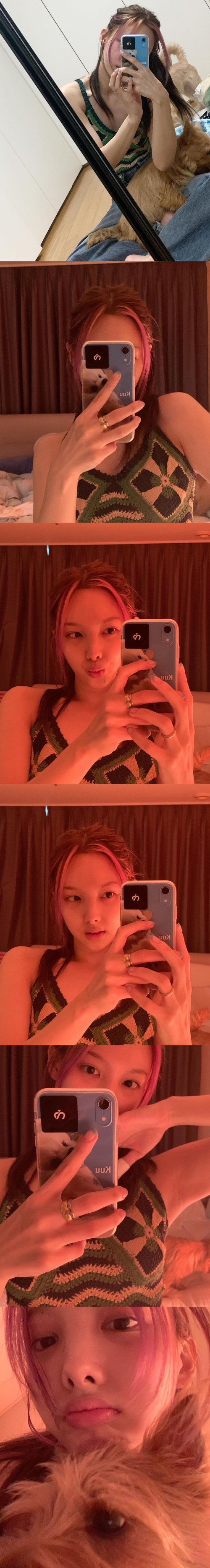 掲載された写真の中には、鏡の前でモモの愛犬ドビーとともに自撮りをするナヨンの姿が写っている。