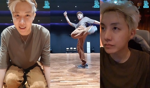 放送でJ-HOPEは、練習室でダンスを練習したり、近況を伝えたりした。