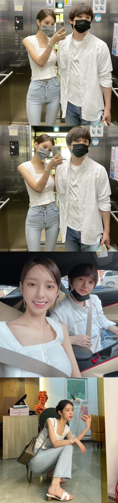 投稿された写真には、エレベーターの中で自撮りをするYaongyiとチョン・ソンウクが写っている。