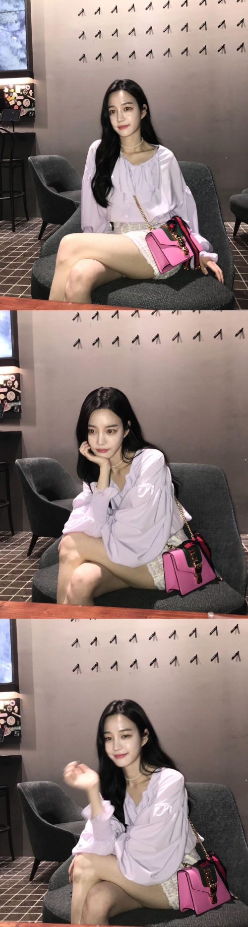 投稿された写真の中には、ソファーに座りながらどこかを見つめるイ・ユビの姿が。シフォンブラウスにツイード素材のショートパンツを合わせた清楚なスタイルだが、ピンクのチェーンバッグをアクセントにし、イ・ユビならではの個性的なコーディネートを完成させている。