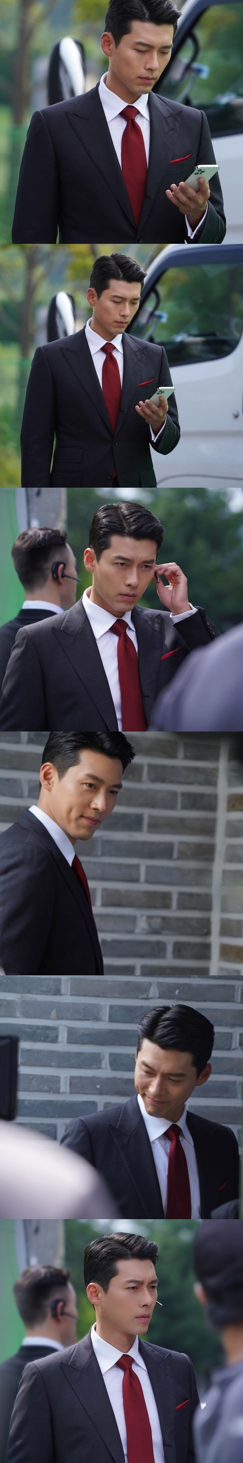 アップされた写真には、クラシカルなスーツに身を包んだヒョンビンの姿が。ビシッとセットされたヘアスタイルは、『愛の不時着』でヒョンビンが演じたリ・ジョンヒョクを想起させる。